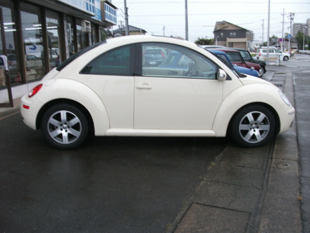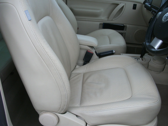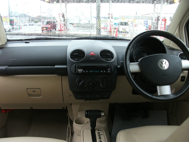 今度は、ニュービートルの最上級モデルで、人気カラーのベージュです。ヒーター付レザーシート・専用アルミホイール・スライディングルーフ・などが標準装備となっています。ワンオーナー車で、気になるキズ・ヘコミもなく、天張りのはがれもございません。シートの状態も良好です。