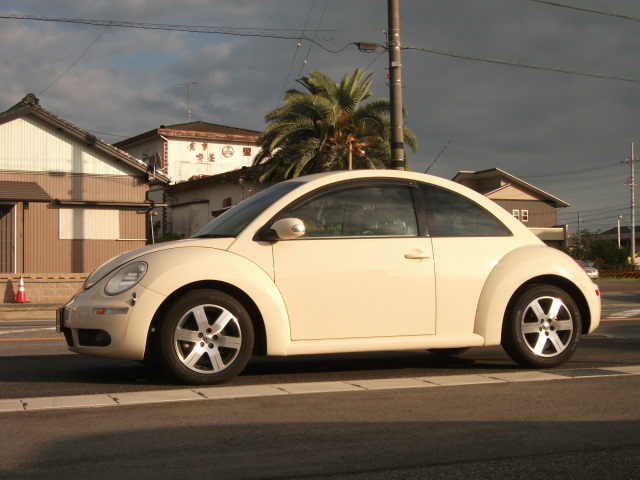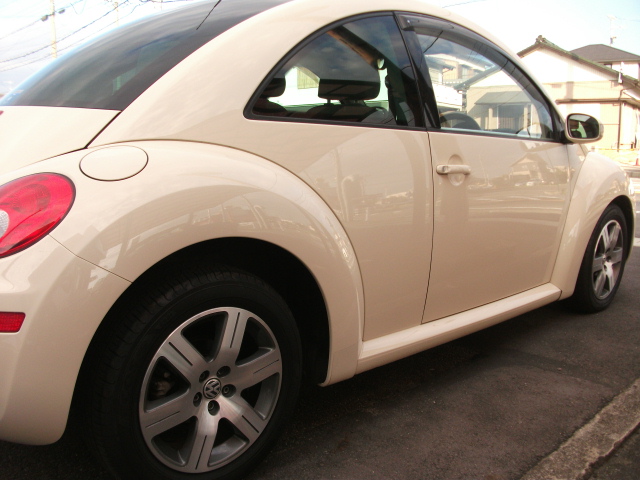 また人気の高いベージュカラーのニュービートルが入りました。 新車時より毎年の同一ディーラーでの整備記録があります。 装備面はインダッシュ開閉タイプのHDDナビにETC 、バックセンサー・電動コーナーポール付。 この車輌も、室内天井部の内張りも換えてあります。 ※平成18年12月登録の'07モデルとなります。