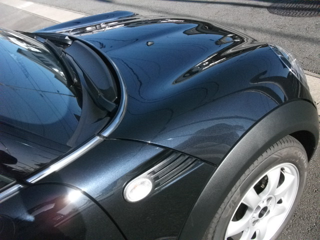 ボディーカラーは正式名称アストロブラック 僅かなダークブルーが入った黒メタといったところ このカラーでルーフ同色は稀な組合わせです。