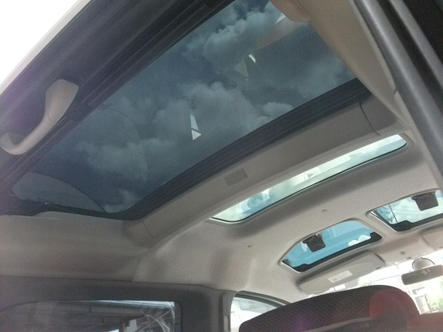 特記装備を挙げるならグラスルーフ自体がスライディングサンルーフになっていて、後部をスライドすると写真の様になります(このまま走行可:バックドアのガラス窓も開閉できます)。また後列シートは脱着できます。これらを好きに使える自由度も売りです。